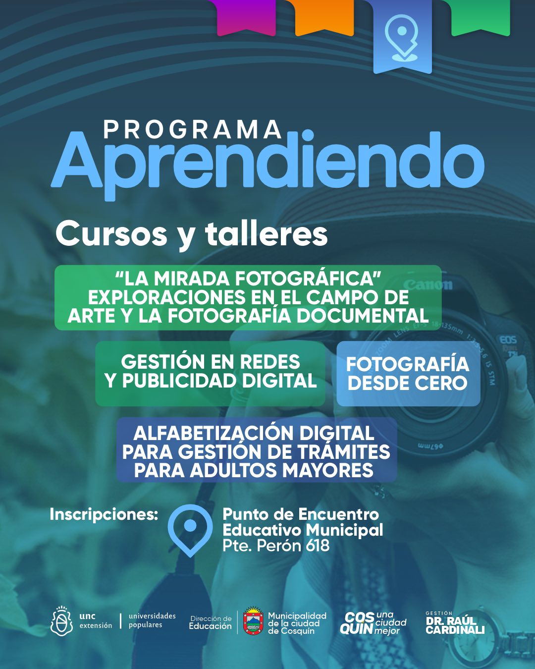 La Municipalidad de Cosquín te invita a conocer las propuestas de cursos y talleres del Programa Aprendiendo, una iniciativa pensada para seguir generando espacios de formación, encuentro y aprendizaje en nuestra ciudad.